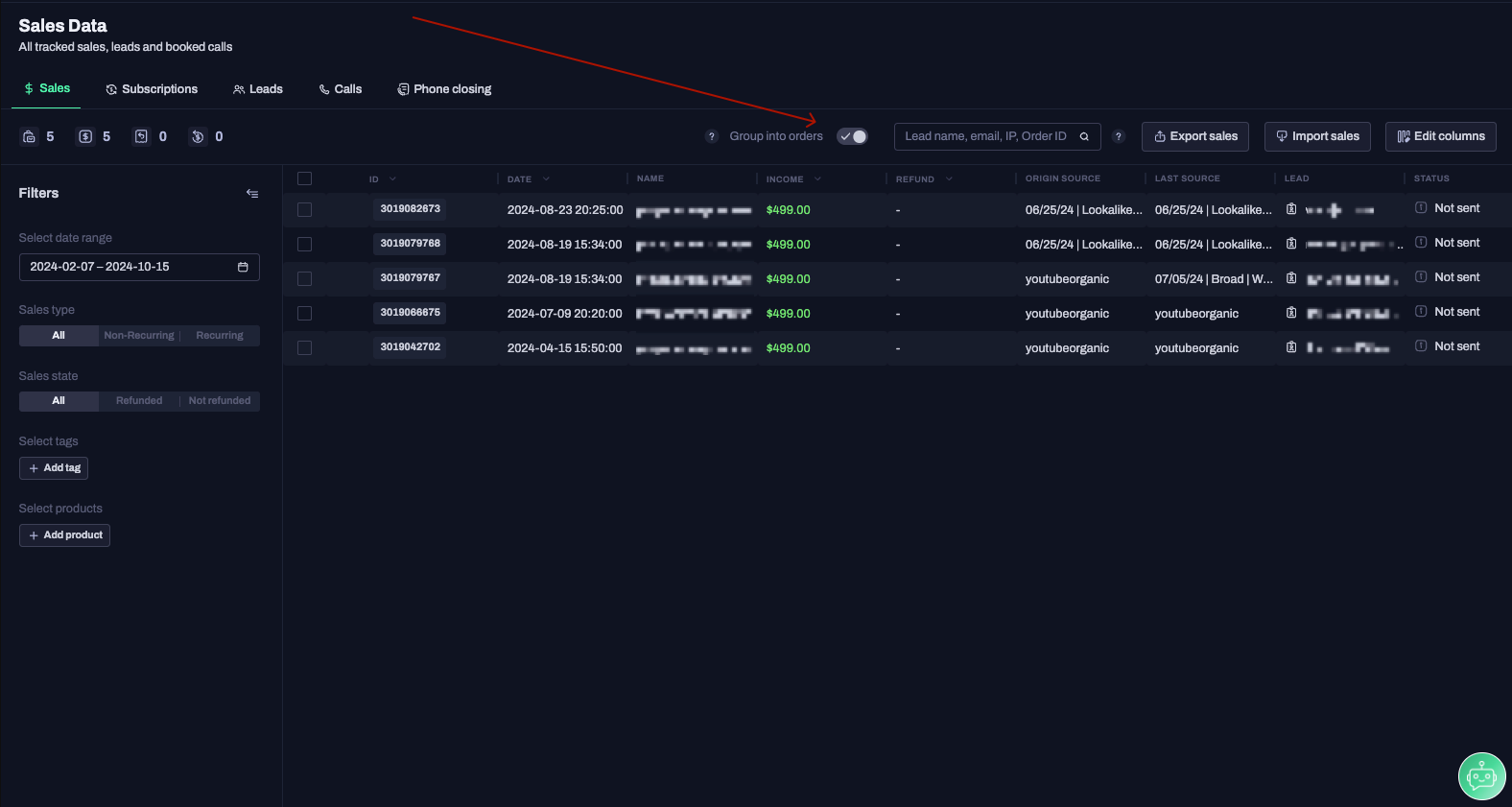 With this new release, the group by order toggle setting will be saved at the account level and will be automatically set when sales are listed, both in sales data and report -> sale details