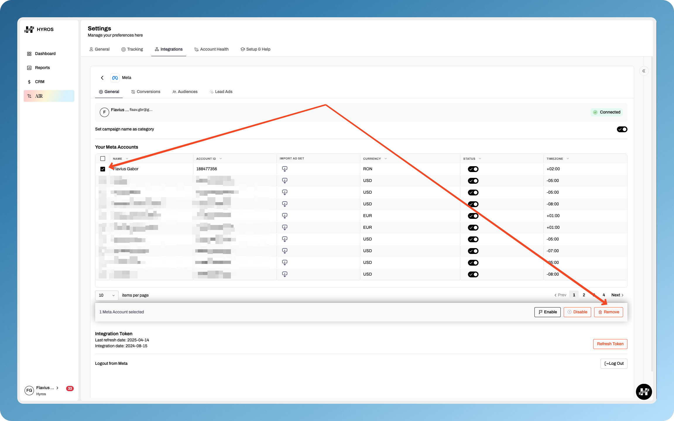 Meta Integration: Remove Ad Accounts